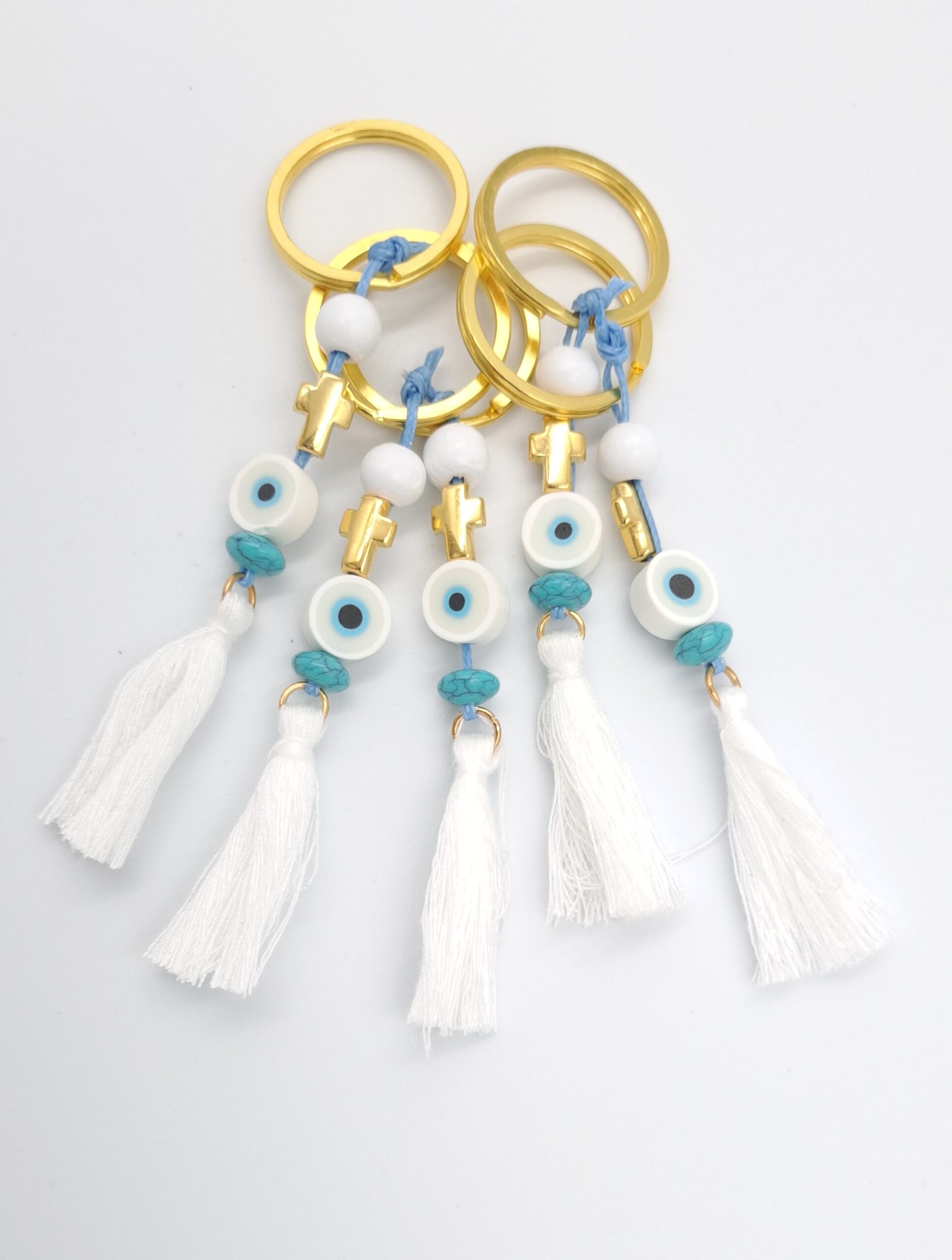 Μαρτυρικό μπρελόκ, λευκή και γαλάζια χάντρα, μάτι λευκό,