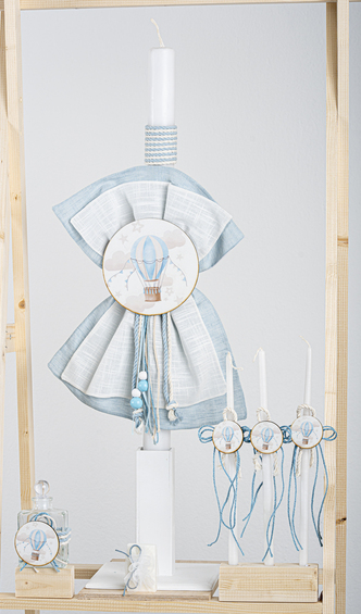 Βαπτιστικό πακέτο Piccolino Emanuel ciele περιλαμβάνει κοστούμι ,σετ λαδόπανα, λαμπάδα, λαδοσετ και στολισμένη βαλίτσα lightblue