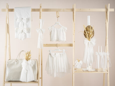 Βαπτιστικό πακέτο Piccolino Isabelle ivory περιλαμβάνει φόρεμα ,σετ λαδόπανα, λαμπάδα, λαδοσετ και στολισμένη τσάντα καπιτονέ
