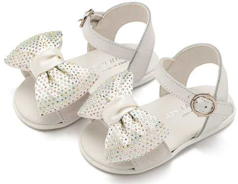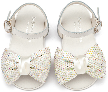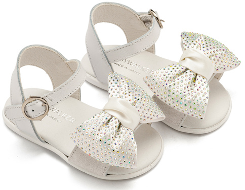 PRI2643-WHITE1 Δερμάτινο Πέδιλο Διακοσμημένο με Μεγάλο Φιόγκο από Στρας σε Λευκό Χρώμα