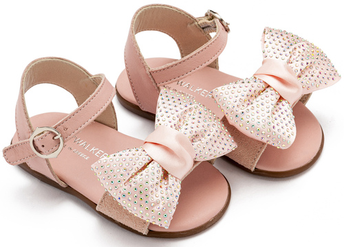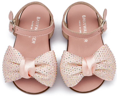 PRI2643-PINK1 Δερμάτινο Πέδιλο Διακοσμημένο με Μεγάλο Φιόγκο από Στρας σε Ροζ Χρώμα