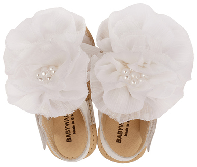 MI1559-WHITE1 Δερμάτινο Πέδιλο Chiffon Λουλούδια σε Λευκό Χρώμα