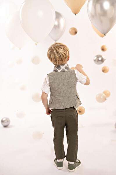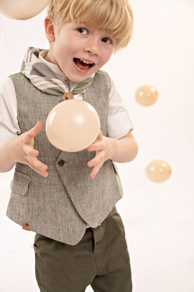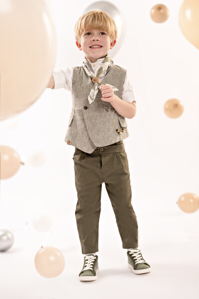 125007 Ένα ιδιαίτερο σύνολο που αποπνέει κομψότητα και φρεσκάδα. Το δίπιετο παντελόνι με την έξτρα λοξή ζώνη σε λαδί βαμβακερή καμπαρντίνα δημιουργεί μια μοντερνα, αλλά κομψή γραμμή. Το μοναδικό αυτό γιλέκο, σταυρωτό, με τσέπες πατάκια και ασύμμετρο τελείωμα, σε χακί ψιλή-ρίγα από cotton-lino, προσφέρει μια μοντέρνα και φρέσκια προσέγγιση στην κλασική κομψότητα. Το βαμβακερό πουκάμισο σε off white απόχρωση με το ιδιαίτερο Mao γιακά φέρνει μια διακριτική και κομψή αίσθηση. Το personalized βουάλ φουλάρι με τα γεωμετρικά σχέδια σε μπεζ-λαδί αποχρώσεις προσθέτει χαρακτήρα, ενώ το ψάθινο καπέλο ή η τραγιάσκα (κατά επιλογή) αναδεικνύει άψογα το look.