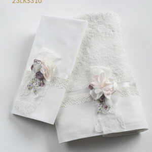 Σετ λαδόπανα Piccolino LK-ELENA IVORY. Αποτελείται απο βαμβακερό λαδόπανο, πετσέτα 140*70εκ, εσώρουχα και πετσέτα ιερέα 30*50εκ. Στολισμένα με χειροποίητα υφασμάτινα λουλούδια. Συνοδευτικό του φορέματος Piccolino GIANNA Ivory