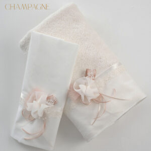 Σετ λαδόπανα Piccolino LK-TIFFANY CHAMPAGNE. Αποτελείται απο βαμβακερό λαδόπανο, πετσέτα 140*70εκ, εσώρουχα και πετσέτα ιερέα 30*50εκ. Στολισμένα με χειροποίητα υφασμάτινα λουλούδια. Συνοδευτικό του φορέματος Piccolino TIFFANY CHAMPAGNE