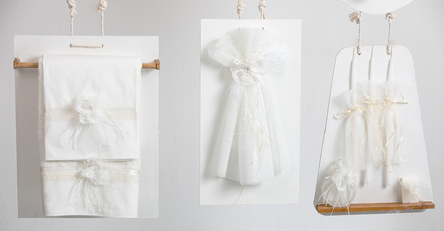 Σετ λαδόπανα Piccolino LK-ELENA IVORY. Αποτελείται απο βαμβακερό λαδόπανο, πετσέτα 140*70εκ, εσώρουχα και πετσέτα ιερέα 30*50εκ. Στολισμένα με χειροποίητα υφασμάτινα λουλούδια. Συνοδευτικό του φορέματος Piccolino GIANNA Ivory
