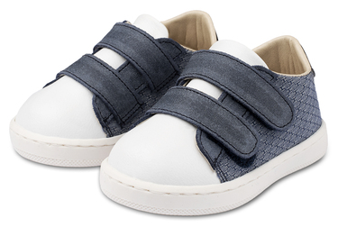PRI2104-BLUE-WHITE1 Τρίχρωμο Sneakers Διπλή Μπαρέτα Χρατς απο Δέρμα και Ύφασμα σε Μπλε Ρουά Λευκό Χρώμα