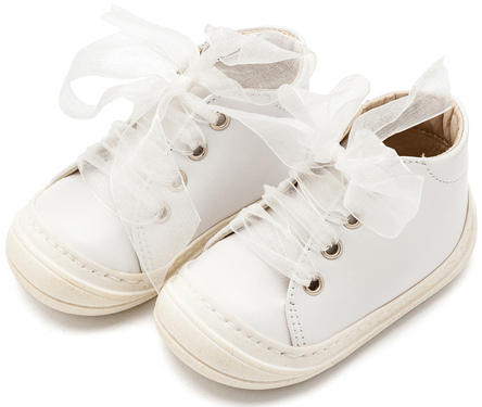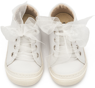 PRI2644-WHITE1 Δερμάτινο Σνίκερ με Δέσιμο Κορδέλα Οργάντζα από Δέρμα Νάπα σε Λευκό Χρώμα