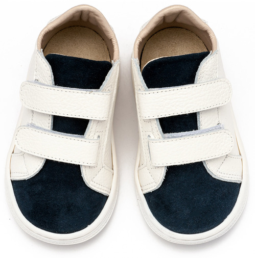 BS3080-WHITE-BLUE1 Σνίκερ από Δέρμα και Ύφασμα με Διπλή Μπαρέτα Χρατς σε Λευκό Μπλε Χρώμα