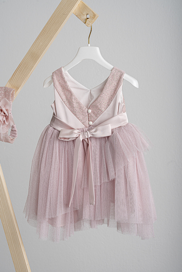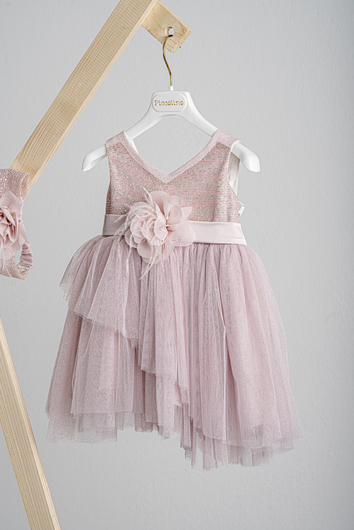 DR25S146.PINK Βαπτιστικό φόρεμα Piccolino Augusta Pink. Μπούστο απο τούλι με γκλίτερ με λαιμόκοψη σε σχήμα V. Ασύμμετρη τούλινη φούστα με γκλίτερ. Σατέν ζωνάκι με δέσιμο στο πίσω μέρος. Το ντεκόρ του φορέματος αποτελείται απο χειροποίητο λουλούδι με πούπουλα μαραμπού. Το φόρεμα συνοδέυεται απο κορδέλα με ντεκόρ όμοιο με το φόρεμα. Διαθέσιμο σε 4 μεγέθη: 6-12, 12-18, 18-24, 24-36(εξτρά χρέωση)