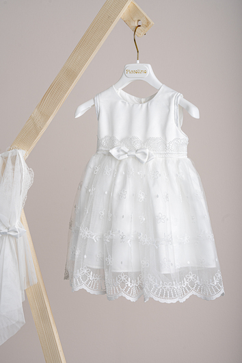 DR25S166.IVORY Βαπτιστικό φόρεμα Piccolino Carnen Ivory, Φόρεμα μεσάτο με μπούστο απο σατέν. Ζωνάκι απο δαντέλα και δαντελένια φούστα. Το ντεκόρ του φορέματος αποτελείται απο σατέν φιογκό. Το φόρεμα συνοδέυεται απο μπαντάνα με ντεκόρ όμοιο με το φόρεμα. Διαθέσιμο σε 4 μεγέθη: 6-12, 12-18, 18-24, 24-36(εξτρά χρέωση)
