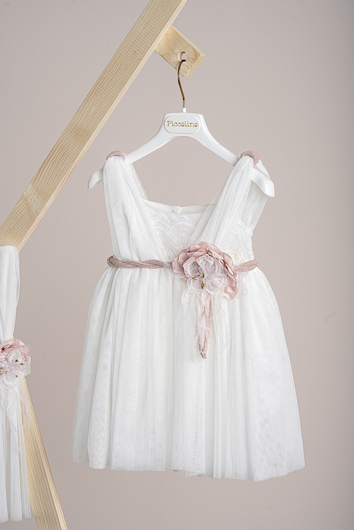 BFG23S04.PINK Βαπτιστικό φόρεμα Piccolino Lydia Pink .Φόρεμα σε αρχαιοελληνικό στυλ, με μπούστο απο δαντέλα και σχέδιο από τούλι που ξεκινά από τους ώμους και καταλήγει στη μέση, με ζωνάκι πλεξούδα σε ροζ απόχωση και τούλινη φούστα. Το ντεκόρ του φορέματος αποτελείται απο εντυπωσιάκο χειροποίητο λουλούδι με δαντέλα και μαραμπού . Το φόρεμα συνοδέυεται απο μπαντάνα με ντεκόρ όμοιο με το φόρεμα. Διαθέσιμο σε 4 μεγέθη: 6-12, 12-18, 18-24, 24-36(εξτρά χρέωση)