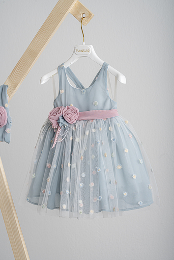 DR25S152.PETRO Βαπτιστικό φόρεμα Piccolino Rebecca Petrol. Φόρεμα απο εκρού τούλι με κεντημένα χρωματιστά λουλουδάκια και πετρόλ επένδυση που του προσφέρει αυτή την ξεχωριστή του απόχρωση. Πλάτη με δέσιμο χιαστί απο τις τιράντες και ανάλαφρο χρωματιστό ζωνάκι που καταλήγει σε έναν ανέμελο φιόγκο πίσω στην πλάτη. Το ντεκόρ του φορέματος αποτελείται απο χειροποίητα λουλούδια περλίτσες και boho κορδόνι. Το φόρεμα συνοδέυεται απο κορδέλα με ντεκόρ όμοιο με το φόρεμα. Διαθέσιμο σε 4 μεγέθη: 6-12, 12-18, 18-24, 24-36(εξτρά χρέωση)