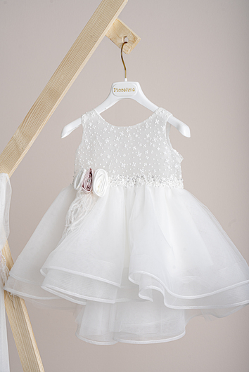 DR25S159.IVORY Bαπτισικό φόρεμα Piccolino Samantha Ivory. Εντυπωσιακό φόρεμα με μπούστο από τούλι και αστραφτερή δαντέλα με στρας, λαμπερό ζωνάκι στη μέση και μία άκρως εντυπωσιακή φούστα με βολάν και μακρυά ουρά. Το φόρεμα συνοδέυεται απο μπαντάνα με ντεκόρ όμοιο με το φόρεμα. Διαθέσιμο σε 4 μεγέθη: 6-12, 12-18, 18-24, 24-36(εξτρά χρέωση)