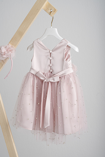 DR25S154.PINK Βαπτιστικό φόρεμα Piccolino Zoe Pink, Φόρεμα μεσάτο με ένα ιδιαίτερα γοητευτικό μπούστο με πιέτες απο σατέν με Ζωνάκι απο σατέν που καταλήγει σε δέσιμο φιογκάκι πίσω στην πλάτη. Εντυπωσιακή ασσύμετρη τούλινη φούστα με πέρλες, με πιο μακρύ το πίσω μέρος της. Το ντεκόρ του φορέματος αποτελείται απο χειροποίητο λουλούδι, στρας και μαραμπού. Το φόρεμα συνοδέυεται απο στέκα με ντεκόρ όμοιο με το φόρεμα. Διαθέσιμο σε 4 μεγέθη: 6-12, 12-18, 18-24, 24-36(εξτρά χρέωση)