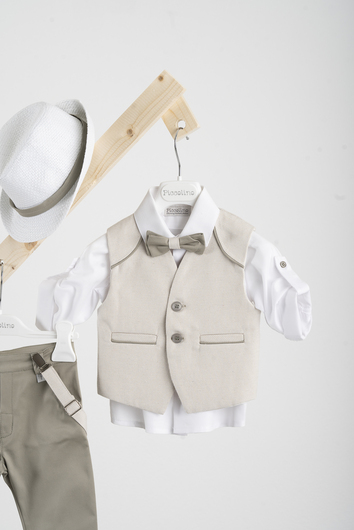 AG25S78.SAGE Βαπτιστικό κοστούμι Piccolino Francisco σε χρώμα Sage. Περιλαμβάνει δίχρωμο γιλέκο με διακοσμητικούς ωμίτες, πουκάμισο βαμβακερό λευκό, παντελόνι βαμβακερό σε χρώμα Sage, παπιγιόν με διχρωμία, ζώνη με double D δέσιμο και καπέλο με φάσα. Διαθέσιμο σε 4 μεγέθη 6-12, 12-18, 18-24, 24-36(εξτρά χρέωση)