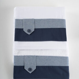 Σετ λαδόπανα Piccolino. Αποτελείται απο βαμβακερό λαδόπανο, πετσέτα 140*70εκ, εσώρουχα και πετσέτα ιερέα 30*50εκ. Στολισμένα με χειροποίητα υφασμάτινα λουλούδια.