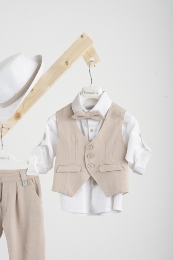 AG25S82.REDWOOD Βαπτιστικό κοστούμι Piccolino Rodrigo σε χρώμα Redwood. Περιλαμβάνει κλασάτο γιλέκο, πουκάμισο λινό, παντελόνι σε χρώμα redwood με πιέτες, παπιγιόν διπλό με μύτες και καπέλο με φάσα. Διαθέσιμο σε 4 μεγέθη 6-12, 12-18, 18-24, 24-36(εξτρά χρέωση)