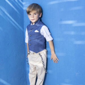 Μπομπονιέρα Φάκελος λινός μπλε chevron. Διάστ.: 17 x 10 cm με κουφέτα Χατζηγιαννάκης
