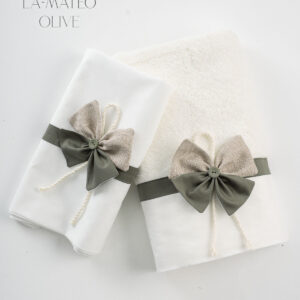 Σετ λαδόπανα Piccolino LA-MATEO OLIVE. Αποτελείται απο βαμβακερό λαδόπανο, πετσέτα 140*70εκ, εσώρουχα και πετσέτα ιερέα 30*50εκ. Συνδυάζεται με το κοστούμι PICCOLINO MATEO OLIVE