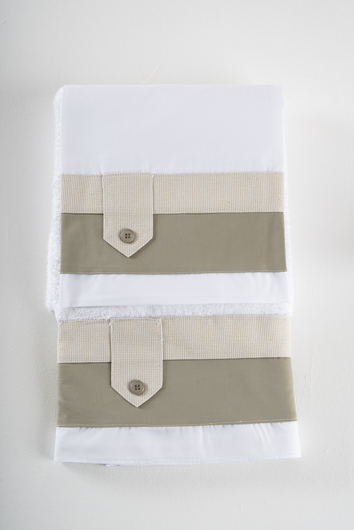 Σετ λαδόπανα Piccolino. Αποτελείται απο βαμβακερό λαδόπανο, πετσέτα 140*70εκ, εσώρουχα και πετσέτα ιερέα 30*50εκ. LA-GUSTAVO.OLIVE