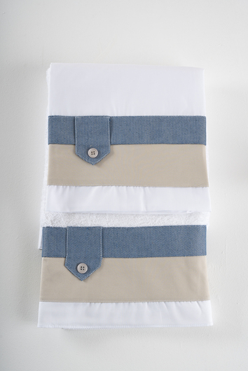 Σετ λαδόπανα Piccolino. Αποτελείται απο βαμβακερό λαδόπανο, πετσέτα 140*70εκ, εσώρουχα και πετσέτα ιερέα 30*50εκ. LA-FRANCISCO.BLUEWHITE