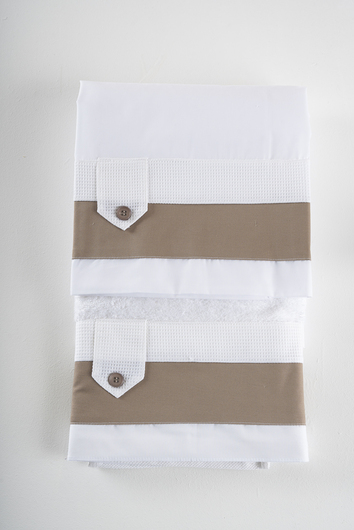 Σετ λαδόπανα Piccolino. Αποτελείται απο βαμβακερό λαδόπανο, πετσέτα 140*70εκ, εσώρουχα και πετσέτα ιερέα 30*50εκ. LA-PABLO.MOCHA