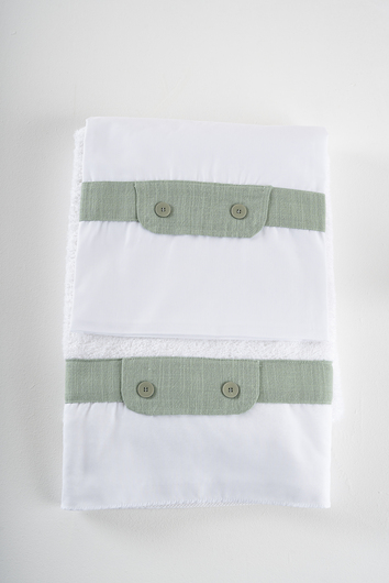 Σετ λαδόπανα Piccolino. Αποτελείται απο βαμβακερό λαδόπανο, πετσέτα 140*70εκ, εσώρουχα και πετσέτα ιερέα 30*50εκ. LA-FRANCISCO.MINTWHITE