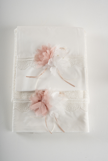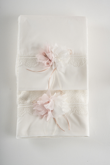Σετ λαδόπανα Piccolino. Αποτελείται απο βαμβακερό λαδόπανο, πετσέτα 140*70εκ, εσώρουχα και πετσέτα ιερέα 30*50εκ. Στολισμένα με χειροποίητα υφασμάτινα λουλούδια. LK-BEATRICE.IVORY