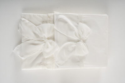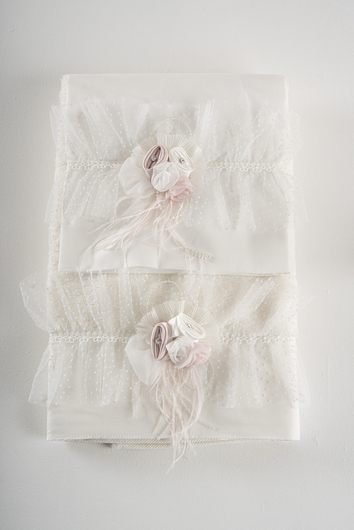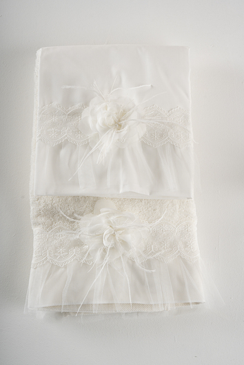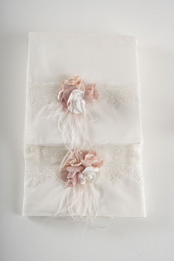 Σετ λαδόπανα Piccolino. Αποτελείται απο βαμβακερό λαδόπανο, πετσέτα 140*70εκ, εσώρουχα και πετσέτα ιερέα 30*50εκ. Στολισμένα με χειροποίητα υφασμάτινα λουλούδια. LK-MARILITA.IVORY