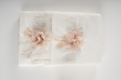 Σετ λαδόπανα Piccolino. Αποτελείται απο βαμβακερό λαδόπανο, πετσέτα 140*70εκ, εσώρουχα και πετσέτα ιερέα 30*50εκ. Στολισμένα με χειροποίητα υφασμάτινα λουλούδια. LK-ISABELLE.IVORY