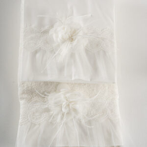 Σετ λαδόπανα Piccolino. Αποτελείται απο βαμβακερό λαδόπανο, πετσέτα 140*70εκ, εσώρουχα και πετσέτα ιερέα 30*50εκ. Στολισμένα με χειροποίητα υφασμάτινα λουλούδια. LK-MARILITA.IVORY