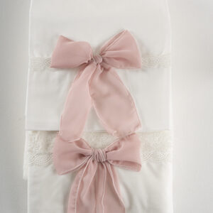 Σετ λαδόπανα Piccolino. Αποτελείται απο βαμβακερό λαδόπανο, πετσέτα 140*70εκ, εσώρουχα και πετσέτα ιερέα 30*50εκ. Στολισμένα με χειροποίητα υφασμάτινα λουλούδια. LK-CONSTANCE.PINK