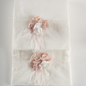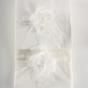 Σετ λαδόπανα Piccolino. Αποτελείται απο βαμβακερό λαδόπανο, πετσέτα 140*70εκ, εσώρουχα και πετσέτα ιερέα 30*50εκ. Στολισμένα με χειροποίητα υφασμάτινα λουλούδια. LK-MARILITA.IVORY