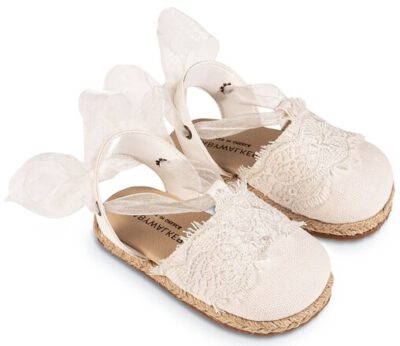 EXC5858-IVORY1 Υφασμάτινη Εσπαντρίγια με Λεπτομέρεια Δαντέλας και Δέσιμο απο Κορδέλα Οργάντζας σε Εκρού Χρώμα