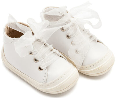 PRI2644-IVORY1 Δερμάτινο Σνίκερ με Δέσιμο Κορδέλα Οργάντζα από Δέρμα Πέρλα σε Εκρού Χρώμα
