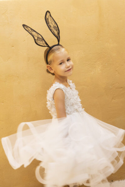 τούλι για έξτρα όγκο. Το σύνολο ολοκληρώνεται με κορδέλα μαλλιών διακοσμημένη