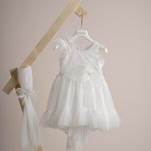 BS3590-IVORY1 Γαλλικό Γοβάκι με Φιόγκο Οργάντζας και Στρασένια Τόκα σε Εκρού Χρώμα